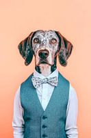 Met een charmant bouquet van bont en expressieve ogen straalt deze Bluetick Coonhound een onmiskenbare elegantie uit. In een stijlvolle outfit met strik en gilet presenteert hij zich als de Tarzan van de hondenmode, klaar om elke kamer te vullen met zijn majestueuze aanwezigheid. Een echte heer op vier poten!