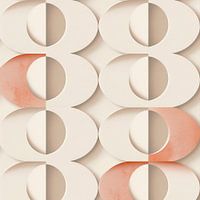 Modern abstracte afbeelding van ronde organische vormen gerangschikt in twee verticale lijnen. De kleurstelling is beige, roze en terra. Prachtig modern en abstract werk voor aan de muur, waar vol verwondering naar gekeken kan worden. Passend bij diverse stijlen en trends, waaronder abstract, modern abstract, peach fuzz. Artist: Bianca ter Riet
