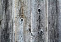Houten planken met eerste tekenen van verwering en vervuiling op een onbegaanbare gestructureerde massief houten wand met herkenbare houtnerf, als privacyscherm naar een privé-eigendom