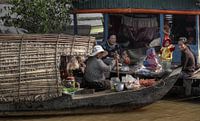 Een familie wonende in een huis op het water. Bij Kampong Chhnang leeft men volledig aangepast aan het water. Het vervoer vindt hier voornamelijk plaats middels bootjes en is de belangrijkste vissershaven voor Phnom Penh. De vissers, voornamelijk etnische Vietnamezen, wonen in drijvende dorpen; hun huizen zijn gebouwd op pontons die op…