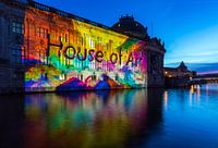 Het Bode Museum op het Museumeiland aan de Spree in Berlijn in een bijzonder licht ter gelegenheid van een verlichtingsfestival in de Duitse hoofdstad.