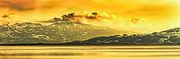 Panoramisch uitzicht op het Bodenmeer en de Zwitserse Alpen met wolken en zonsondergang in de winter