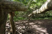 Foto gemaakt vanuit het hart van een Banyan Tree. Deze bomen kenmerken zich door de vele kleine stammen en kunnen enorm groot worden. Deze bomen zijn ook bekend geworden van de TV serie Lost.