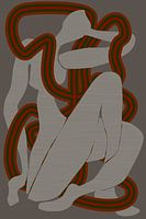 Grafisch ontwerp van een lichaam en lijnen in grijs en rood.