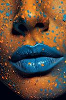 De kleuren die gebruikt zijn - blauw, turquoise en oranje - werken harmonieus samen om een levendige en expressieve sfeer te creëren. Het diepe blauw symboliseert sereniteit en rust, terwijl het sprankelende turquoise een gevoel van vernieuwing en vitaliteit toevoegt. Het levendige oranje vertegenwoordigt passie en energie, en voegt een vleugje dynamiek toe aan het geheel.