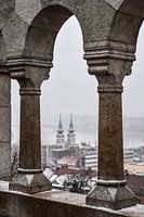 Winters uitzicht op het stadsdeel Waterstad (Víziváros) in de Hongaarse hoofdstad Boedapest vanop het Vissersbastion.
