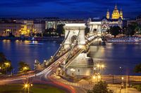 Boedapest - Kettingbrug met de St. Stephen's Basiliek van Thomas Rieger