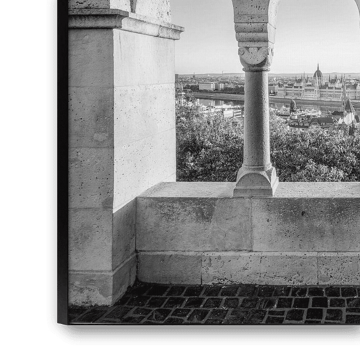 Zicht op Boedapest in de ochtend in zwart-wit.