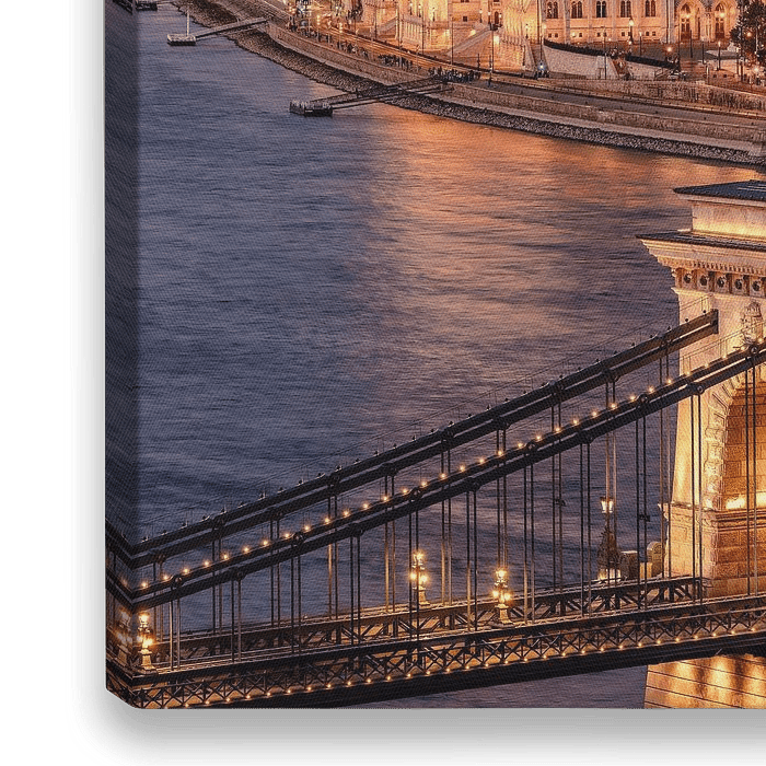 Op de voorgrond zie je een pijler van de beroemde Kettingbrug van Boedapest.