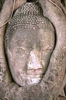 Boeddhabeeld in een boom in Ayutthaya in Thailand
