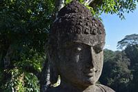 Boeddha gefotografeerd in Ubud, in de jungle van Bali. Prachtige stenen en verweerde Boeddha met op de achtergrond jungle. Boeddha in natuurlijke groene omgeving. Zen, meditatie, mindfulness, yoga. Passend bij diverse trends en stijlen.