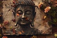 Vind rust en harmonie in je eigen huis met dit prachtige schilderij van Boeddha, omgeven door kalmerende bloemen. Perfect voor in de slaapkamer of op kantoor.