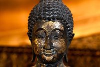 Wie ooit in Wat Pho in Bangkok is geweest kent de inmens grote en imposante liggende Boeddha natuurlijk. De kleine Boeddha op deze foto is prachtig vastgelegd met de reclining Boeddha op de achtergrond.