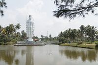 Deze Boeddha staat in Sri Lanka en wordt overnieuw geschilderd. Hij staat volledig in de steigers.