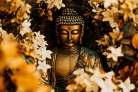 Deze prachtige afbeelding toont een serene Boeddha-statue, omringd door delicate gouden en witte bloemen. Het ontwerp straalt een sfeer van rust, balans en tijdloze schoonheid uit. Met subtiele goudtinten en een warme achtergrond is dit een perfecte toevoeging aan elke ruimte die een vleugje spiritualiteit en verfijning nodig heeft. Ideaal voor gebruik in slaapkamers, eetkamers of meditatieruimtes, waar het een gevoel van harmonie en inspiratie brengt. Voeg deze unieke kunst toe aan je interieur en creëer een oase van rust in je eigen huis.