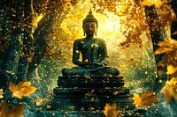 Dit serene ontwerp toont een indrukwekkend boeddhabeeld te midden van een betoverend herfstlandschap. Omringd door gouden bladeren die lijken te dansen in het zachte zonlicht, straalt het een gevoel van rust en spiritualiteit uit. Perfect voor wie een zen-achtige sfeer wil creëren in huis of kantoor. De warme kleuren en verfijnde details maken dit ontwerp een echte blikvanger. Ideaal als wanddecoratie voor ruimtes waar ontspanning en harmonie centraal staan. Voeg een spiritueel accent toe aan je interieur en geniet dagelijks van de rustgevende energie die dit ontwerp uitstraalt.