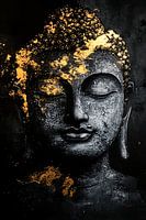 Dit ontwerp straalt rust, mystiek en verfijning uit. Het toont een serene Boeddha met gesloten ogen, gehuld in donkere tinten en subtiele gouden accenten. De textuur van de achtergrond en de gouden verfstrepen geven het schilderij een unieke, moderne touch. Dit kunstwerk past perfect in minimalistische en moderne interieurs, waar het als meditatieve blikvanger kan fungeren. Ideaal voor een slaapkamer, woonkamer of zelfs een kantoorruimte waar een kalmerende sfeer gewenst is. De combinatie van zwart, goud en grijstonen geeft het een tijdloze elegantie en biedt een gevoel van balans en harmonie. Het is een verfijnd stuk dat zowel decoratief als spiritueel inspireert.