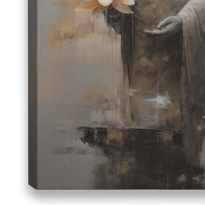 Op dit verfijnde digitale schilderij is een serene Boeddha afgebeeld, met in zijn hand een zachte lotusbloem, symbool van zuiverheid, wedergeboorte en verlichting. De fijne penseelstreken onthullen een subtiel kleurenpalet dat de diepte van de achtergrond en het detail van de Boeddha benadrukt. Wat direct opvalt, zijn de liefdevolle…