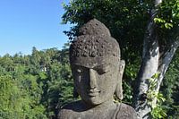 Boeddha gefotografeerd in Ubud, in de jungle van Bali. Prachtige stenen en verweerde Boeddha met op de achtergrond jungle. Boeddha in natuurlijke groene omgeving. Zen, meditatie, mindfulness, yoga. Passend bij diverse trends en stijlen.