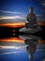 Boeddhabeeld in water met reflectie