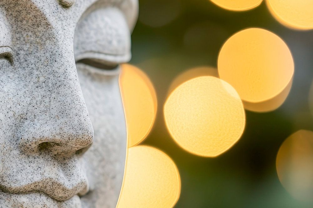 Zachte rust straalt van dit elegante Boeddhabeeld, dat schittert met zijn kalmerende gezicht en subtiele gloed. De delicate gouden lichtjes op de achtergrond voegen een dromerige sfeer toe. Perfect voor de woonkamer of een meditatieruimte, het creëert een oase van rust en contemplatie.