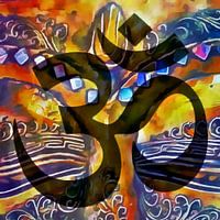 Deze afbeelding, Buddhist Om, toont het symbool voor de mantra Om over het voorhoofd en het derde oog van een Boeddhabeeld. Om is de heiligste mantra in het Tibetaans boeddhisme (en hindoeïsme) en wordt gebruikt aan het begin en einde van gebeden en het reciteren van teksten. Om vertegenwoordigt het hele universum, de combinatie van geest, lichaam en geest.