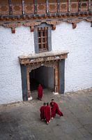 Tijdens een reis door Bhutan bezocht ik een klooster in de plaats Trongsa. Dit gigantische klooster genaamd Trongsa Dzong wordt nog altijd bewoond door boeddhistische monniken zoals de jongens op de foto in hun prachtige rode gewaden op de binnenplaats van dit voormalige fort. Dit bouwwerk werd eerst in 1543 als eenvoudige tempel ontwikkeld en is door de eeuwen steeds verder uitgebouwd tot het grootste fort van Bhutan. Wanneer je door het fort loopt waan je je terug in de tijd door de oude bouwstijl, monniken in hun traditionele rode klederdracht en het geluid van de mantra's op de achtergrond.