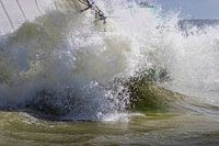 De boegspriet ('opsteker') van een skûtsje breekt door een golf op het IJsselmeer bij Stavoren