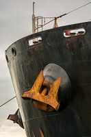 Koop de foto Boeg van een zeeschip naar zee in de avond zee afgemeerd in de sluis. van scheepskijkerhavenfotografie als print op canvas, aluminium dibond, (ingelijste) fotoprint, behang en ArtFrame. Voor jou op maat geprint in Fine-Art kwaliteit.