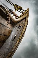 De boeg, detail van een Kamper kogge. een schip dat ruim bemeten is en werd gebruikt voor de handel te vervoeren.