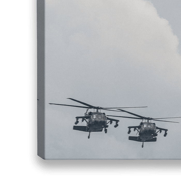 Koop de foto Boeing 727 en 2 Black Hawks in 1 foto gevangen. van Jaap van den Berg op canvas, aluminium dibond, (ingelijste) fotoprint, behang en ArtFrame, op maat geprint in Fine-Art kwaliteit.