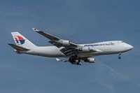 Boeing 747 Cargo van Malaysia Airlines vlak voor de landing op de Polderbaan.