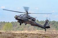 Boeing AH-64 Apache gevechtshelikopter van de Koninklijke Luchtmacht oefent op de heide bij Oirschot (GLV-5).