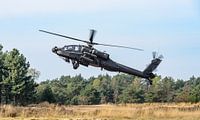 Boeing AH-64 Apache gevechtshelikopter van de Koninklijke Luchtmacht oefent op de heide bij Oirschot (GLV-5).