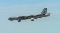 Een Boeing B-52 Stratofortress (bijnaam BUFF) van de U.S. Air Force staat op het punt te gaan landen op Barksdale Air Force Base (Louisiana).