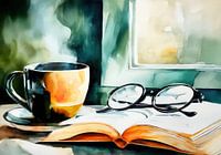 Boek en koffie - Aquarel stilleven van Niklas Maximilian