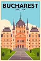 Het prachtige gebouw met zijn elegante torens en imposante koepeldak steekt majestueus af tegen de blauwe hemel. De warme gevels, doordrenkt van geschiedenis, stralen een uitnodigende sfeer uit, terwijl de brede laan naar de ingang leidt. Een echte blikvanger die de schoonheid van Boekarest belichaamt en uitnodigt tot verwondering.