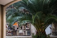 Boeken Books Bücher Livres Libro. Eyecatcher gevonden in een achteraf straatje in Italie, Zo gaaf heel die stapel boeken en dan die grote palm ervoor.