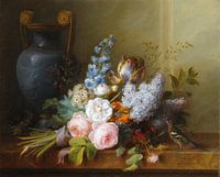 Boeken met bloemen met een vogelnestje, Cornelis van Spaendonck