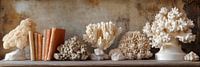 Koop dit stilleven Boekenkast met Koraalschatten van Digitale Schilderijen als print op canvas, aluminium dibond, (ingelijste) fotoprint, behang en ArtFrame. Voor jou op maat geprint in Fine-Art kwaliteit.