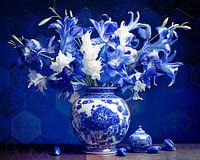 Dit blauwe bloemstilleven voegt niet alleen kleur toe, maar straalt ook rust en elegantie uit.