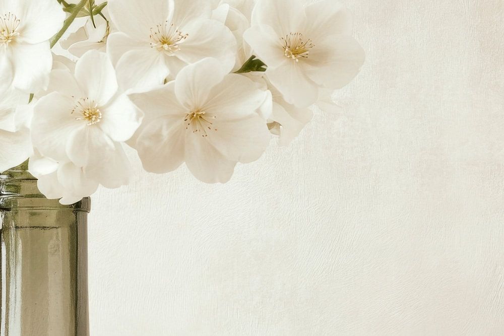 Delicate bloemen in een elegante, grijze glazen vaas geven elke kamer een gevoel van rust en frisheid. Het harmonieuze kleurenschema en de fijne details van de bloemen stralen een tijdloze elegantie uit. Dit kunstwerk is ideaal voor de slaapkamer en creëert een rustgevende sfeer die uitnodigt om te ontspannen en te dromen.