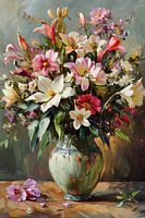 Een boeket bloemen in de stijl van een klassiek schilderij.
