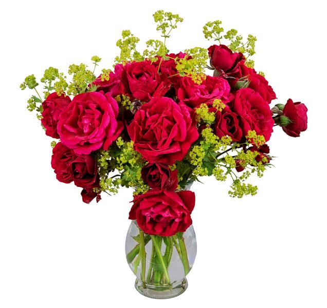 Boeket rode rozen in een vaas op een witte achtergrond van ManfredFotos