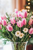 Een harmonieuze compositie van delicate roze tulpen en frisse witte madeliefjes creëert een gevoel van frisheid en levensvreugde. De zachte kleuren brengen licht in elke kamer en geven de omgeving een uitnodigende sfeer. Dit bloemstuk is perfect voor in de keuken, waar het stralende accenten zet en inspireert tot creatieve kookmomenten.