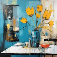 Dit betoverende schilderij uit 'Bloesems in Bloei' toont een harmonieuze mix van kleurrijke bloemen in volle bloei. De kunstenaar legt op vakkundige wijze de delicate dans van bloemblaadjes vast, waardoor een visuele symfonie van de schoonheid van de natuur ontstaat.