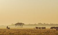 De boer, op weg met een kruiwagen vol lekkers naar zijn koeien. Dit landschap in Noordwijk met zicht op de kerk van Voorhout blijft voor mij nog steeds een prachtige plek, zeker als er nevel is met zon. De bomen, de boer met kruiwagen, de schapen en natuurlijk de koeien en de rust is misschien precies de plaat die u zoekt. Het is een serie van 5 foto's