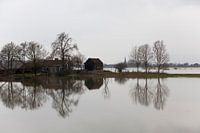 Deze foto is gemaakt in februari 2021, bij Heerewaarden. Op dat moment had de Waal een hoge waterstand, waardoor de uiterwaarden onderliepen en deze boerderij bijna geisoleerd werd.