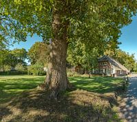 Boerderijen tussen oude bomen, Kootwijk, Gelderland, Nederland