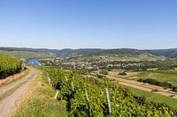 Boerenweg door de wijngaarden bij Brauneberg Moezellandschap met het wijndorp Mülheim op de achtergrond